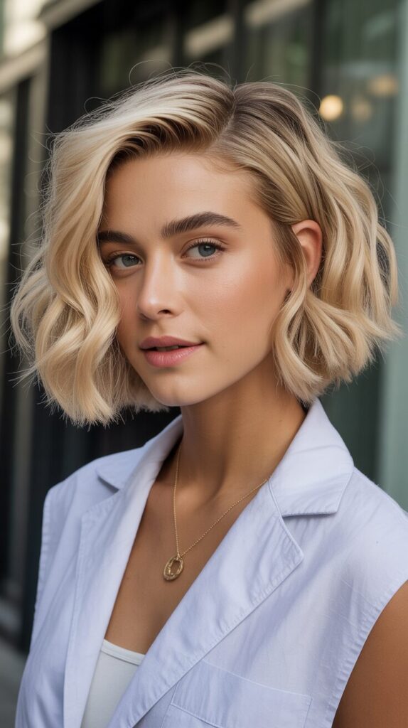 The texture of this short bob keeps it from looking too stiff, and it even looks better the second day because the waves keep it from looking too stiff. If you’re always running in the morning, this is a great time-saver because it thrives on looking a little disheveled, or as we might say, tousled.