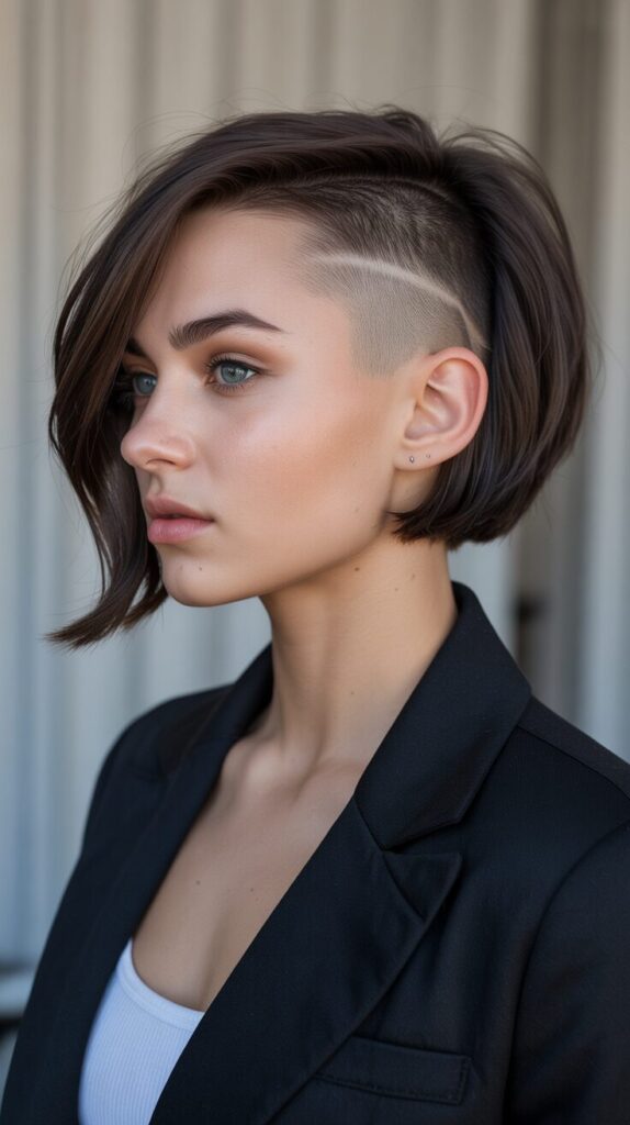 As the undercut lightens up thick hair, the top stays longer and shaped and the undercut still feels clean and controlled. A striking bob with a shaved underlayer and soft shaping at the top will give you the look just right. It is edgy, but it’s surprisingly wearable. It is best to get it just right with an ultra-short bob that is ear-length and has a shaved or closely cropped underlayer.