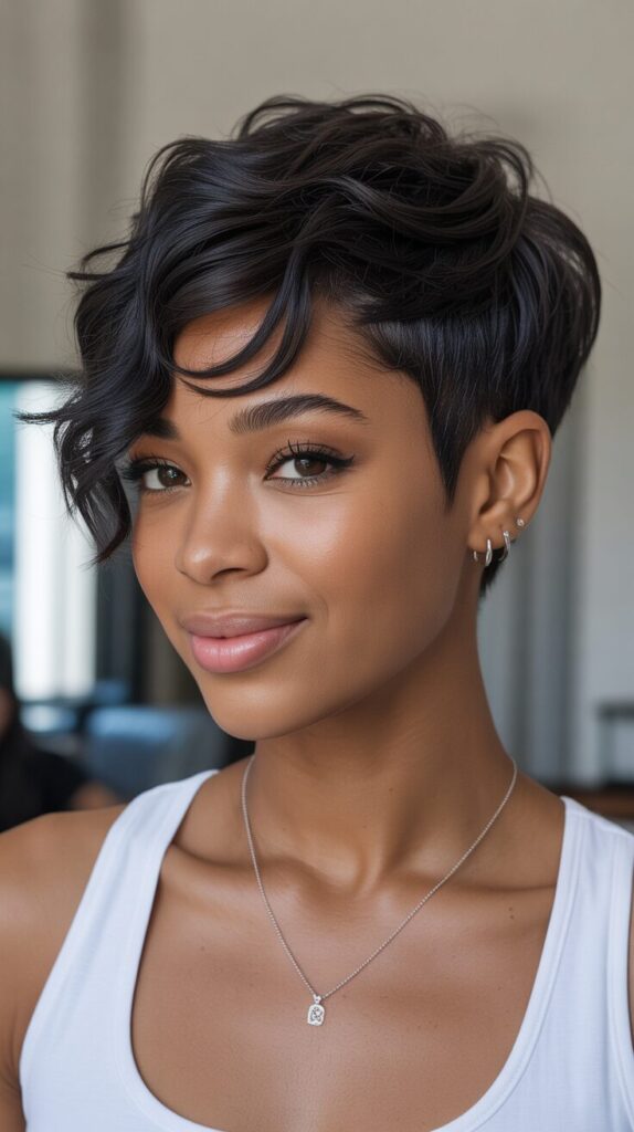 Pixie undercuts are daring options that combine edgy style with elegance. The sides and back are shaved closely, while the top remains longer, creating movement and contrast. Stylish, low-maintenance, and trendy, the undercut pixie is ideal for women who want a standout, fashion-forward look. It can be styled creatively with spikes or defined curls.