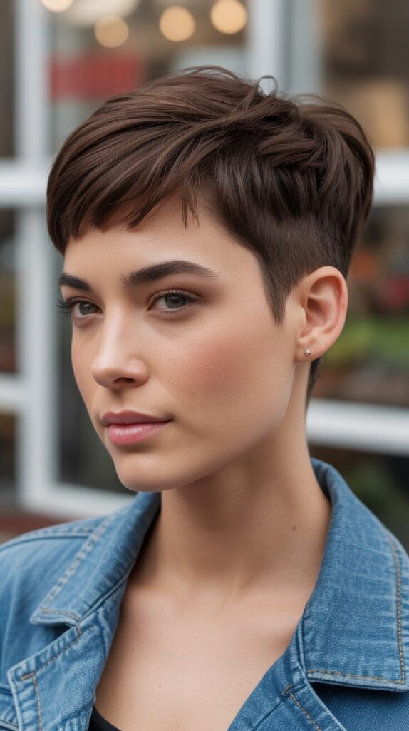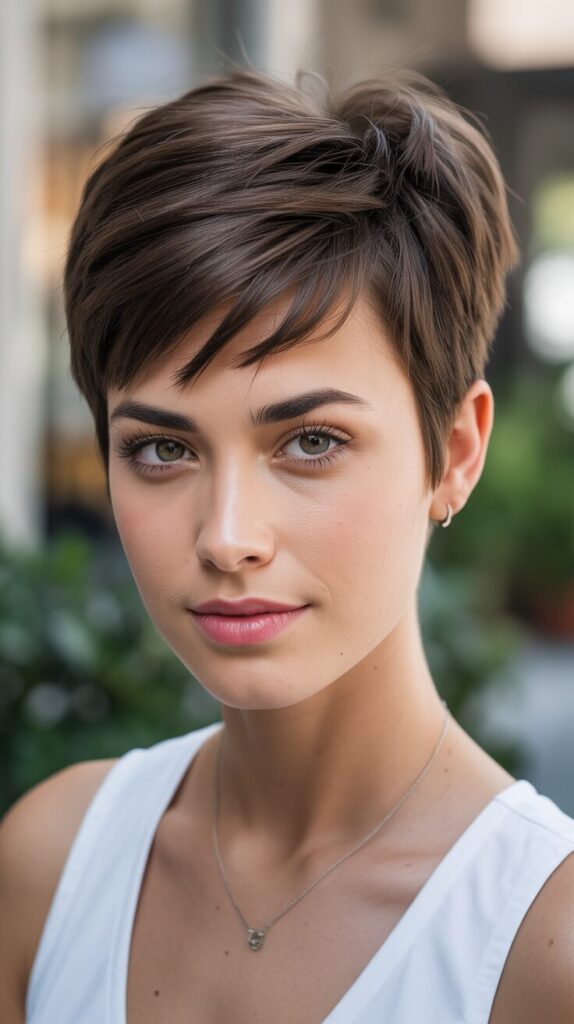 There are many styles available for the short pixie haircut, but the classic short pixie haircut stands out for its clean lines and soft layers. It gives a neat and polished appearance. The style is timeless and easy to maintain, working for both straight and slightly wavy hair.