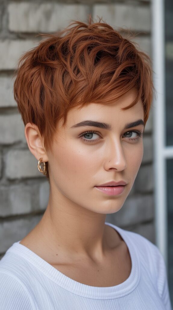With a messy short pixie haircut, you can create a relaxed and playful look. It embraces natural movement and texture. Styling is effortless and trendy and takes very little time. This is ideal when you are in need of casual confidence.