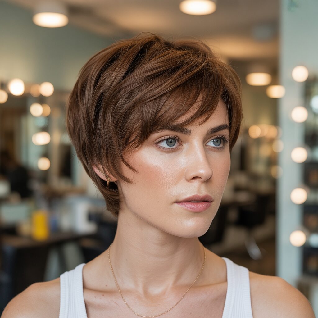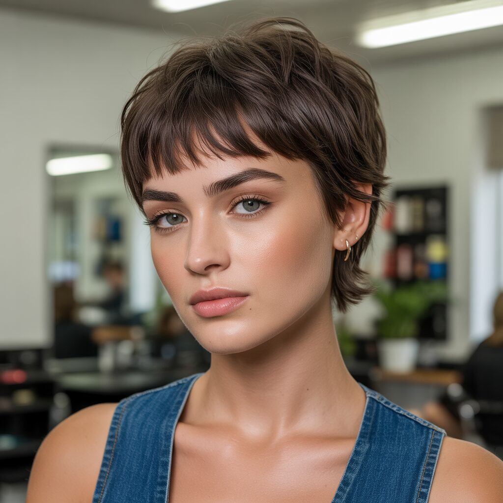 The micro bangs give the hair some texture without falling into your eyes, while the textured top adds just enough shape to the style. So go super short with the pixie shag that’s super cropped and super easy. If you’re someone who likes to switch up your hair often, this might feel limiting—but if you love a mow-maintenance style, this one’s a dream come true.
