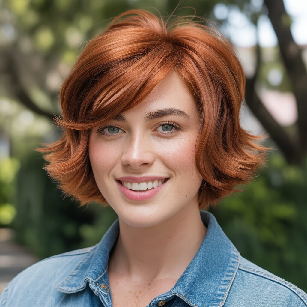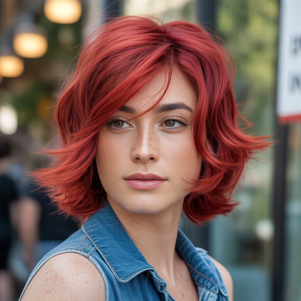 You will love the balance this chin-length shag brings in terms of texture, color, and volume. The layers make your hair feel lighter, and the red tones make everything pop. You will love how flattering it is around the face and how much volume it adds to fine or thin hair.