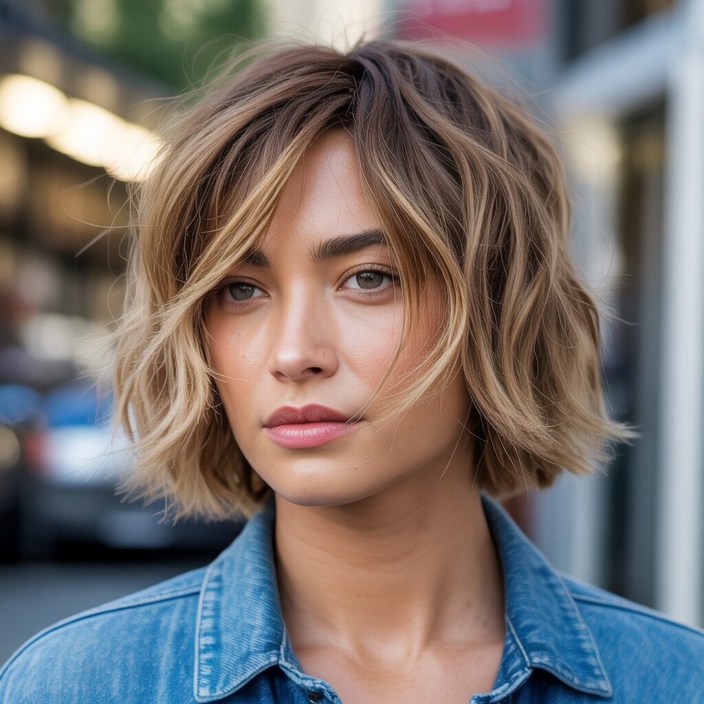 With an easygoing, textured shape, the tousled bob has just the right amount of fullness to make it look naturally styled, while layers add just the right amount of fullness to make it appear effortless. For that undone look, apply a little texturizing spray at the ends.