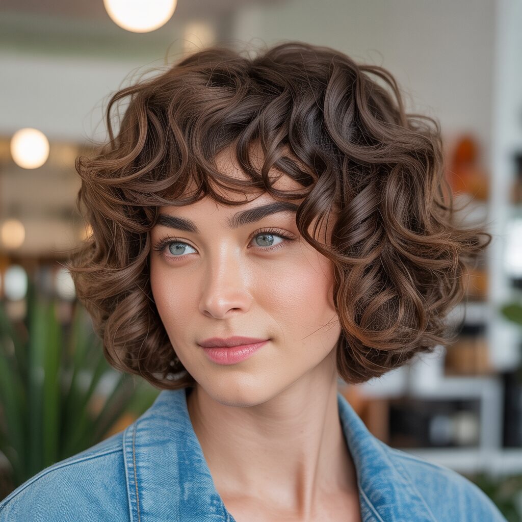 Using a curl cream or diffuser will help keep your hair soft and frizz-free throughout the day, and the short, choppy layers will give you lift and definition without adding too much volume. Use a curl cream or diffuser to keep your hair soft and frizz-free throughout the day.