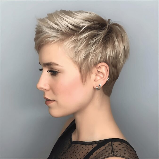 A choppy pixie has choppy layers which give your hair a boost of volume and add some height to the hair if you use a root lifting spray at the roots and blow-dry it with a round brush. To bring out all of that volume, apply a little root lifting spray at the roots and dry with a round brush for added volume.