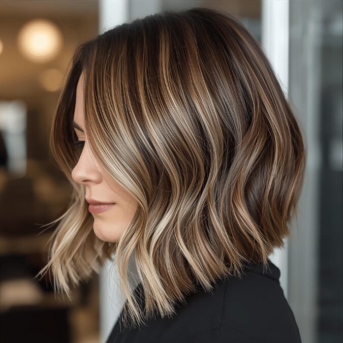 I know that winter can be a bit dull at times, but this layered bob with highlight will brighten up any dull day. If you want to keep it low-maintenance, ask your stylist for soft, minimal layers – just enough to give it shape but not too much. It’s all about subtle dimension here, adding depth to your look.