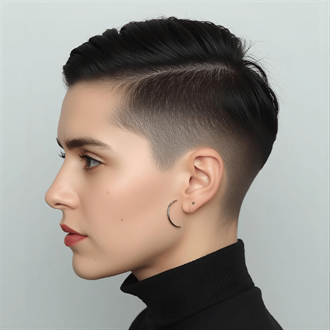 Taking on winter in style with slicked-back hair is the perfect way to take on the season with flair. With your hair styled back off your face, this haircut makes a statement-making look. Ideal for fine hair, this cut makes your hair look denser and more structured. When you use a pomade or gel to smooth your hair back, you will get that signature lift you are looking for.