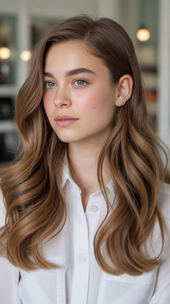 Loose waves create a soft and natural look. This hairstyle adds movement and texture. It works well with minimal styling effort. Loose waves suit casual settings perfectly. Can be created with heat or natural drying. Easy to refresh throughout the day. A relaxed everyday hairstyle.