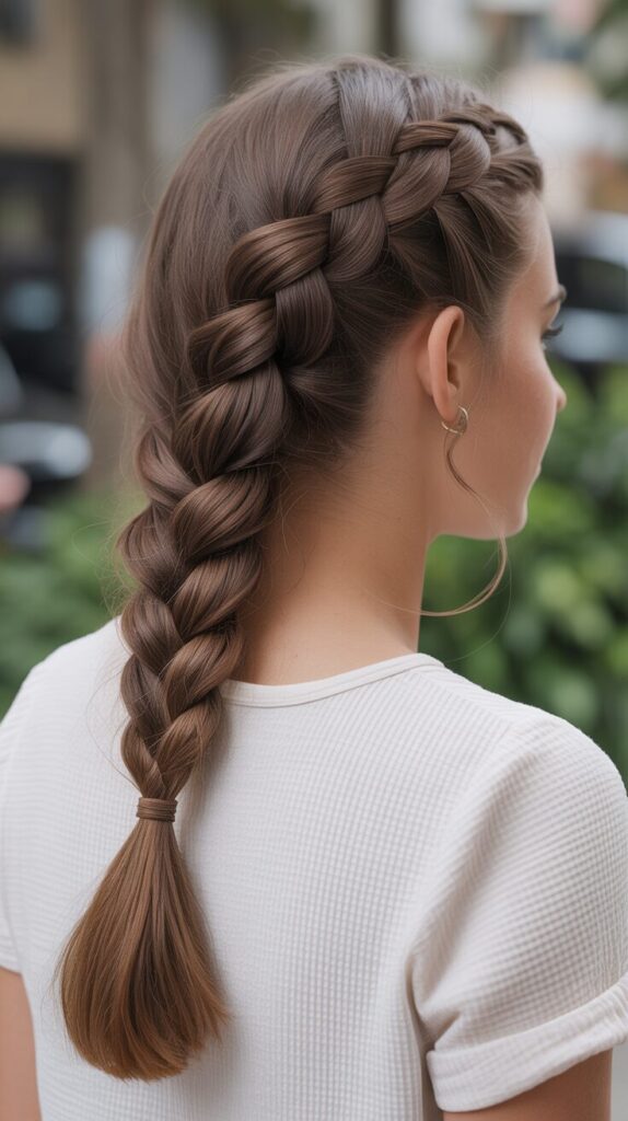A basic braid keeps hair tidy and controlled. It works well for long or medium hair. The style prevents tangling. Braids last all day comfortably. It suits casual daily wear. No complicated styling needed. A practical and stylish hairstyle.