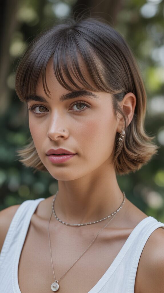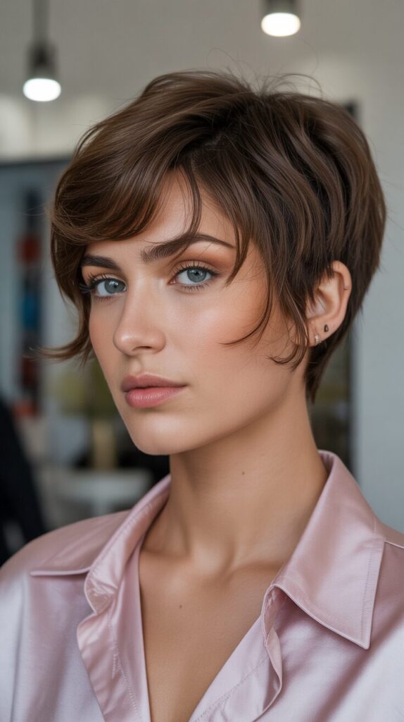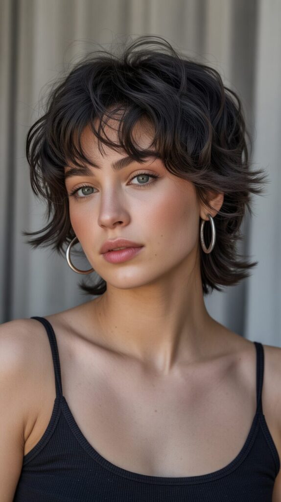 This pixie soft mullet looks perfect on brunette hair because besides its short and dynamic length, it also exudes confidence and has a hint of rebelliousness to it.