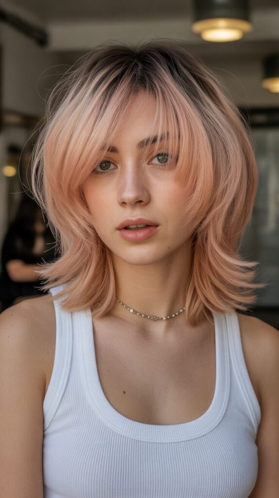 Embrace your individuality with the Soft Mullet Wolf Cut on Pink Hair, a trendy and avant-garde choice that embraces the spirit of individuality in a style that embraces the spirit of change.