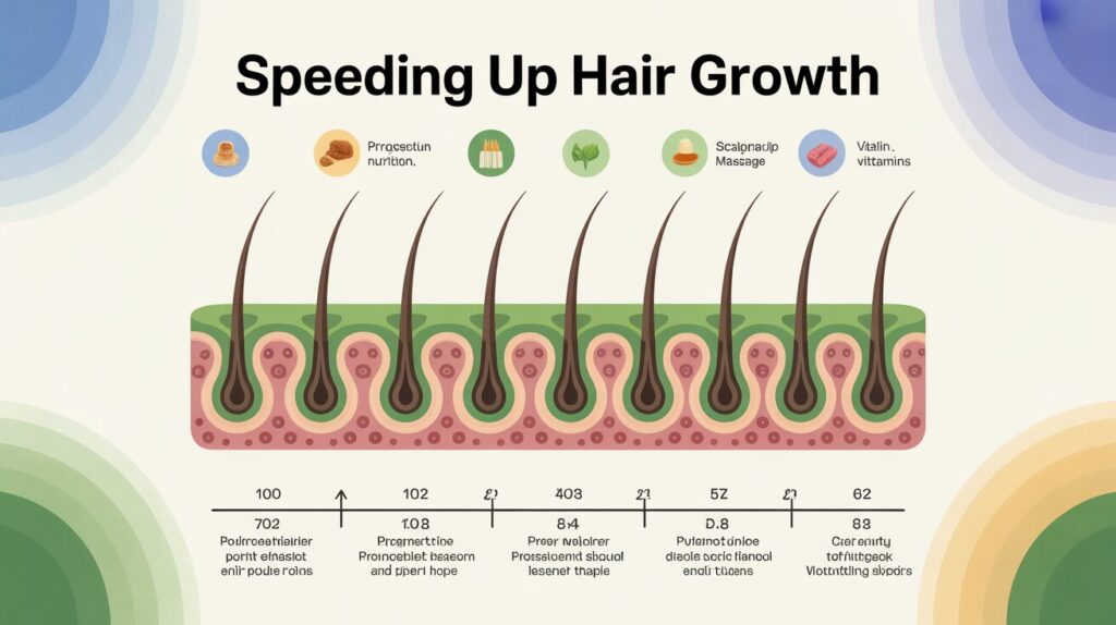 “Speeding up” the growth of your hair involves optimizing your body and hair care habits in such a way that your hair is able to grow at its best natural rate, while retaining the length you achieve.