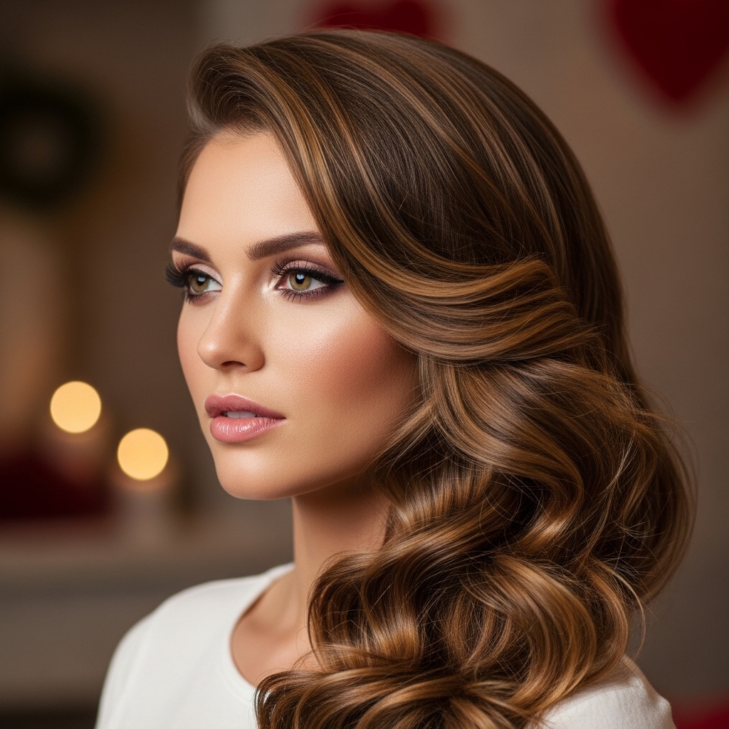 7. Side-Swept Curls Valentine’s Hairstyle for Romantic Drama