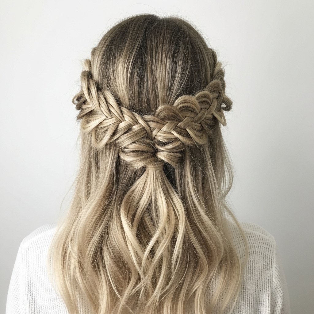 5. Loose Braided Crown Valentine’s Hairstyle with Romantic Texture