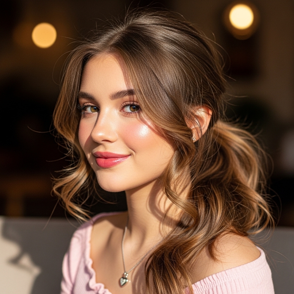 A soft ponytail with loose face-framing strands delivers a romantic and youthful vibe. Its relaxed texture prevents it from feeling overly structured. It works well on all hair types and lengths. Gentle waves add movement and softness. Perfect for casual dates, daytime outings, or cozy Valentine’s plans.