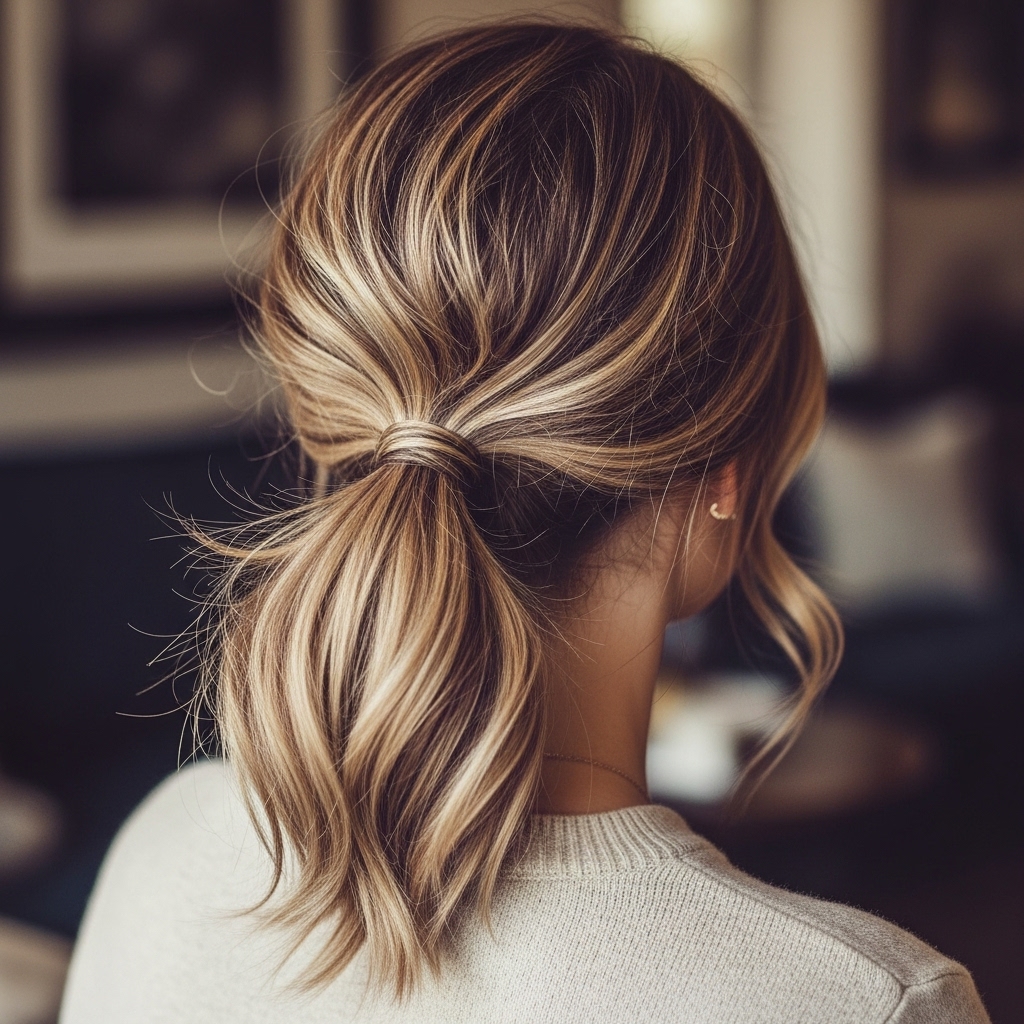 8. Messy Low Ponytail Valentine’s Hairstyle with Soft Waves