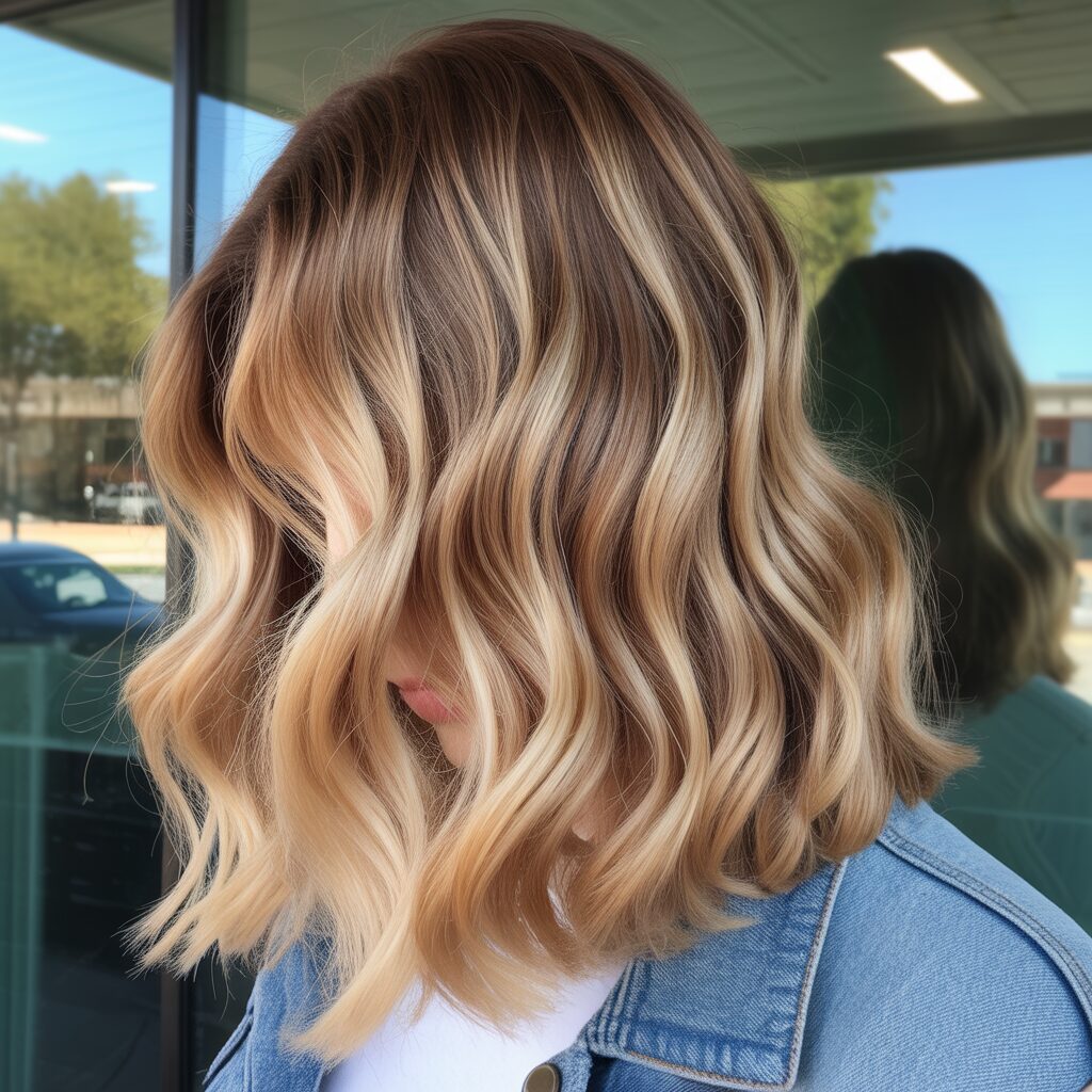 As a warm blonde shade, caramel blonde combines golden and light brown tones. This warm tone creates depth and richness. It is a very flattering shade in natural light. This shade of blonde is great for balayage and highlights.