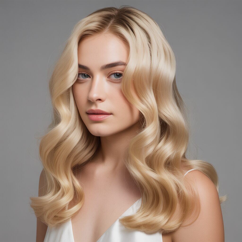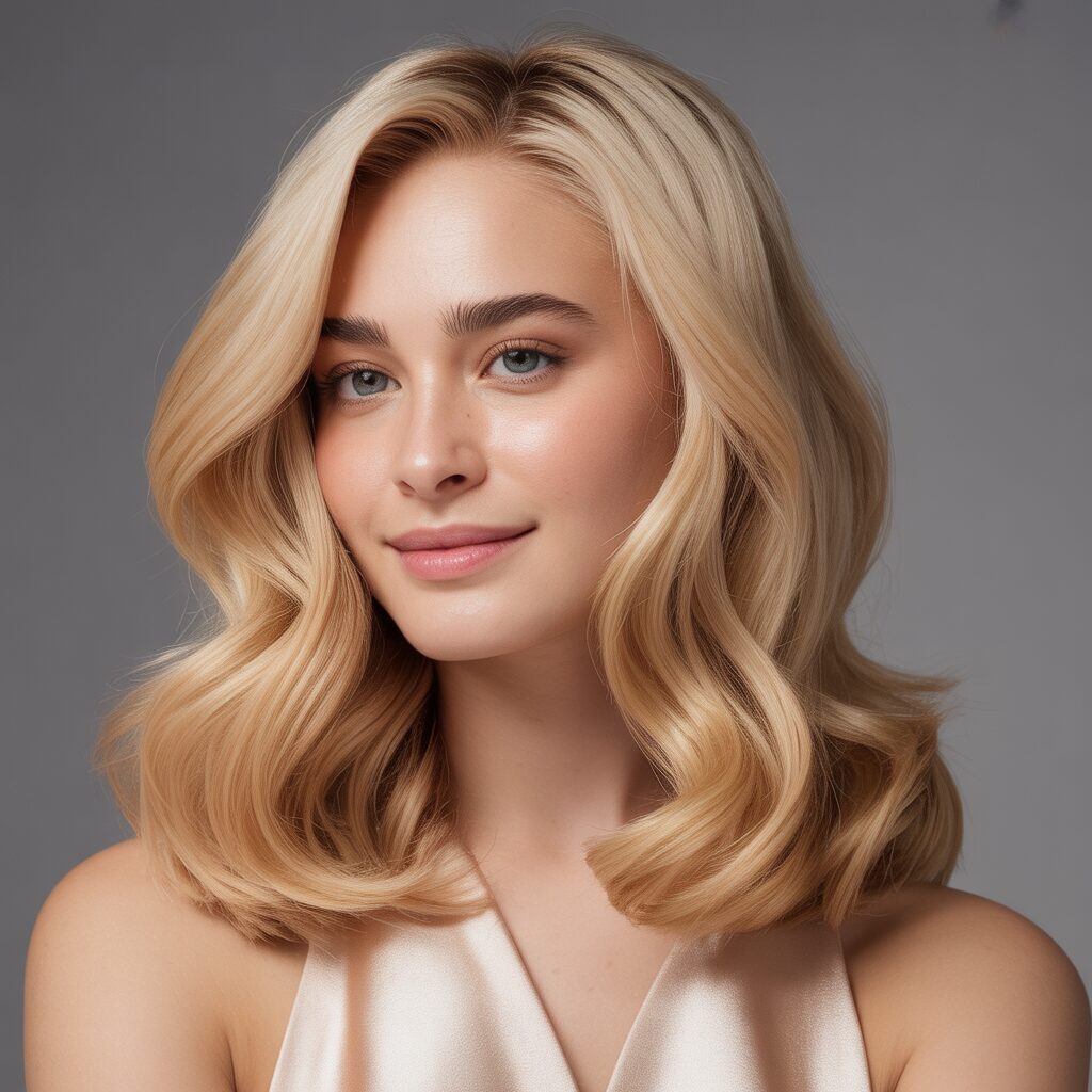 This gold beige blonde hair color looks smooth and elegant. It adds warmth without overpowering the look. This color suits many skin tones. It creates a polished finish. Ideal for refined styles and elegance.