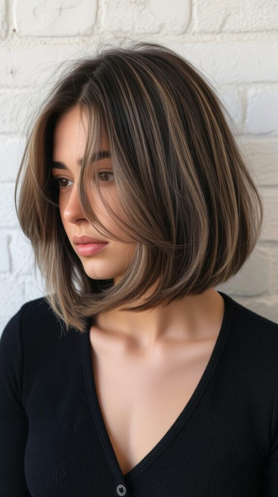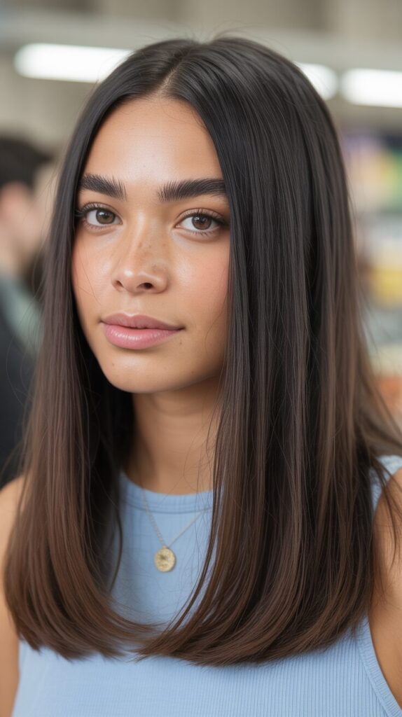 A long bob haircut with subtle layers helps hair fall in a flattering shape without obvious choppy edges. It’s a long bob haircut that looks fresh two days after washing. And, because it doesn’t rely on blunt lines, it grows out smoothly between trimmings.