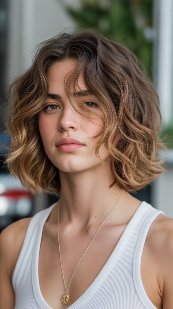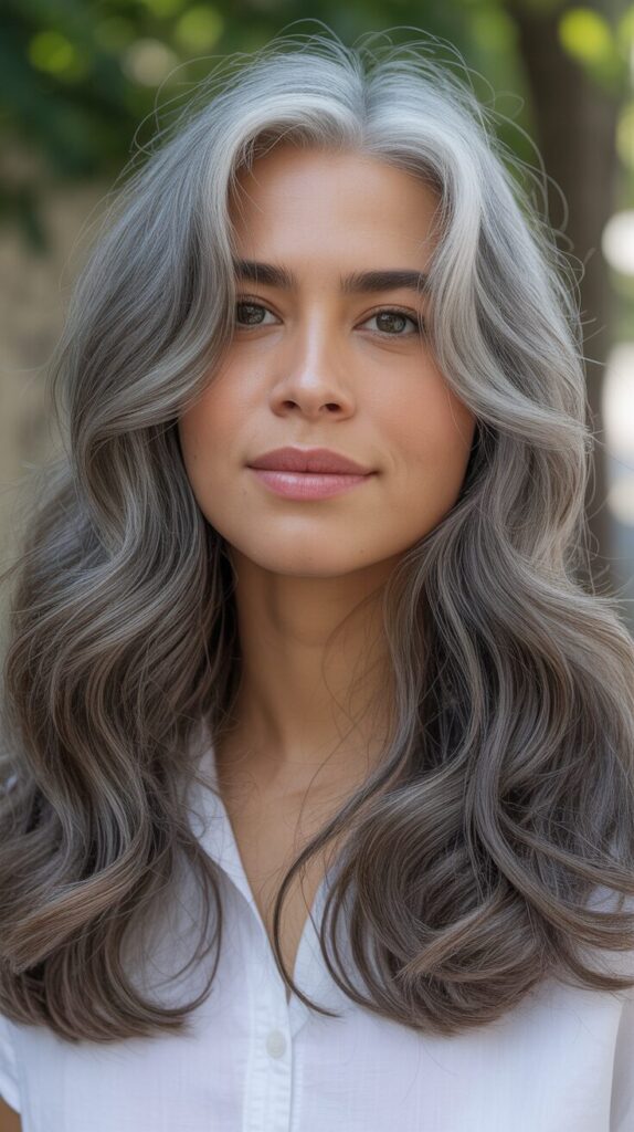 If you’re letting your gray grow out, you could have the most effortless style you’ve ever had. Natural waves get a gentle lift from light layering, so you don’t have to worry about constant reshaping. It air-dries with soft texture and movement.