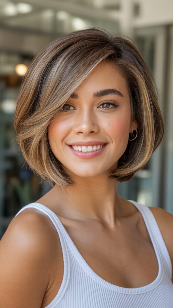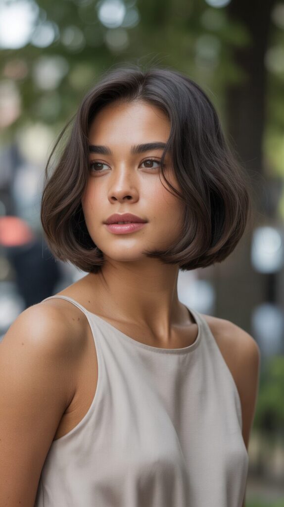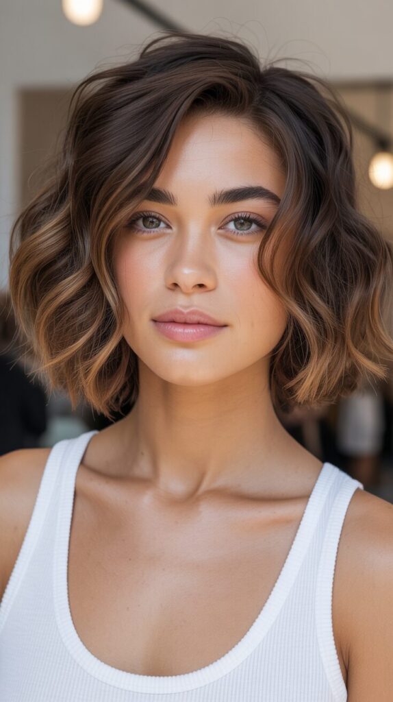 With this short bob, you’ll look super stylish while still keeping things simple and elegant at the same time. It frames your face perfectly and has enough shape that it falls right in place just after it has been air dried. Let it dry naturally for a soft, touchable finish.