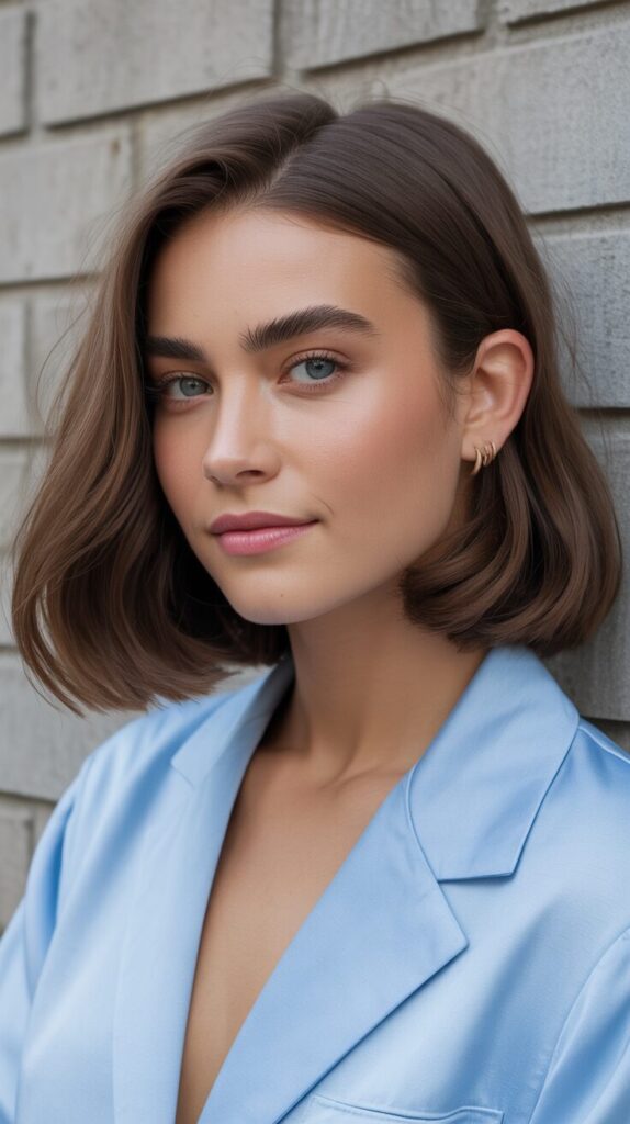 It’s just a little bit of mousse or styling cream all it needs before drying. As a result of the slightly textured ends, these blunt waves fall naturally into place. It’s a chic, easygoing look that keeps your hair feeling light and fresh.