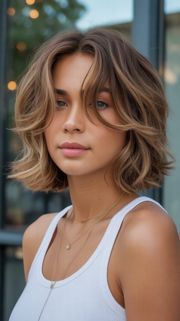 A soft glow is created by the lighter tones in this shoulder-length style, giving your hair a natural glow that brightens your hair naturally. A loose wave gives your hair a relaxed shape and airs with ease, so it is a great style for anyone who likes a hair color that reflects the light and a texture that looks fresh at all times.