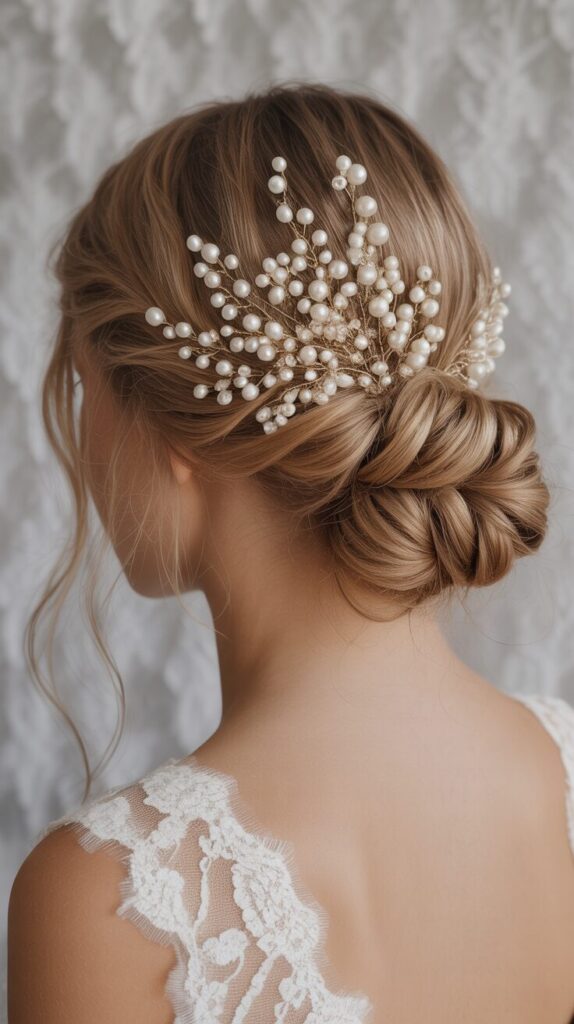 Adding hair accessories to wedding hairstyles instantly elevates the look of the hairstyles. Pearls, pins, and tiaras add sparkle and enhance the overall bridal look. Perfect for glamorous weddings, this style feels luxurious and unique.