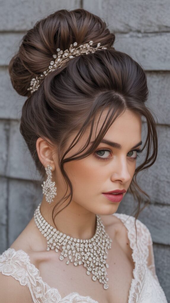 High buns create a bold and regal appearance. It adds height and structure to the hairstyle. This style looks great with heavy bridal outfits. It keeps the hair away from the face and makes you look glamorous and confident.