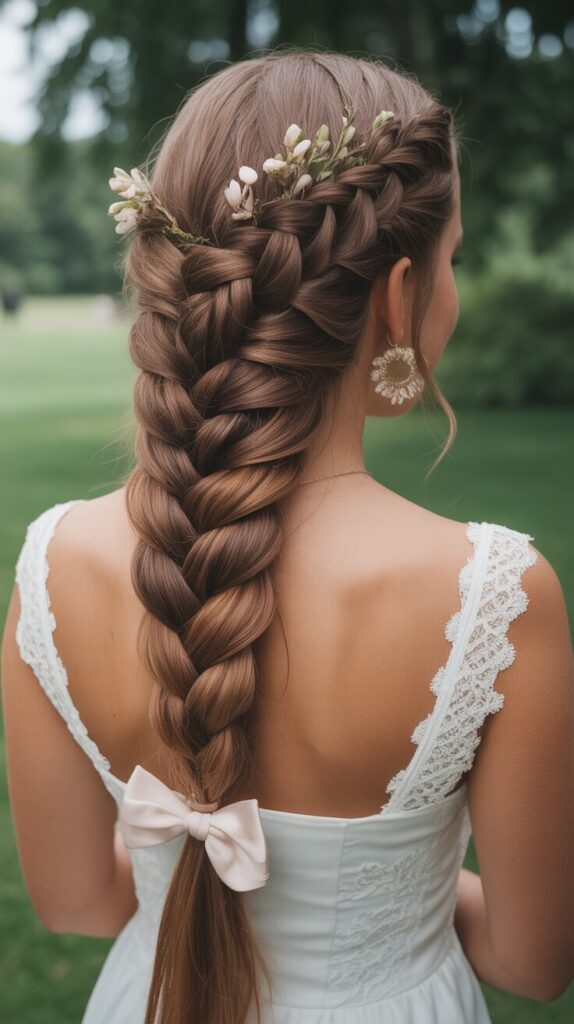 I love waterfall braids. They give your hair a very delicate and artistic look. They emphasize length and texture beautifully. This style adds a fairy-tale touch to your hair. They’re perfect for outdoor ceremonies.